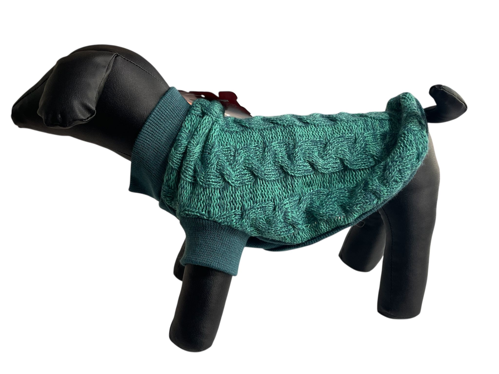 Abrigo para perro confeccionado en lana color verde, ideal para mantener a tu mascota abrigada durante los días fríos